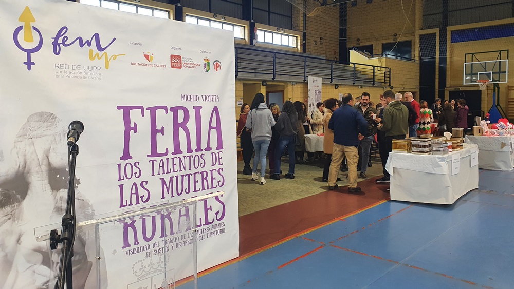 Durante el segundo trimestre del año, la Federación Española de Universidades Populares (FEUP) está desarrollando el proyecto Micelio II Fem UP Cáceres, un programa que tiene como objetivo dar visibilidad a las aportaciones que las mujeres vienen y han venido realizando en sus territorios tanto desde el ámbito doméstico, personal y profesional como en el plano económico, social, político y cultural. En este escenario se pone en marcha la II Feria de los Talentos de las Mujeres Rurales, una muestra que cuenta con la financiación de la Diputación Provincial de Cáceres y el apoyo técnico de la Escuela Feminista Estatal FEUP Paca Aguirre (EFE-FEUP Paca Aguirre) y que, en esta ocasión se celebra en la localidad de Almoharín, Cáceres (1.782 habitantes) en paralelo a a la I Convivencia de las Universidades Populares, donde se esperan alrededor de medio millar de personas que podrán conocer de primera mano el trabajo o la experiencia de las mujeres participantes. La cita será el 18 de noviembre en la Nave de Ocio, zona Helipuerto de Almoharín.